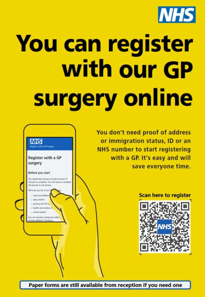 Online Registration FormAlternatively, please come to reception to complete the registration form if you cannot complete it online.